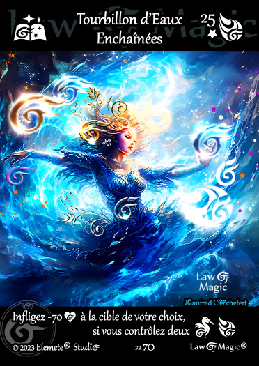 Comment allez-vous vous y prendre pour invoquer le puissant Riukren des Eaux Enchaînées ? Affrontez vos adversaires, et gagnez toujours plus en puissance. Avec ces 72 Cartes à Jouer et à Collectionner Law Of Magic®, choisirez-vous la voie de la Beauté des Arts combinée à la magie des Eaux, ou allez-vous exprimer votre soif de domination sur les Océans Déchaînés ?